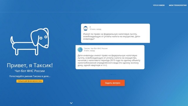 Чат-бот «Таксик» обучаем — чем больше ему задают вопросов, тем быстрее он приобретает новые знания. Сейчас он отвечает на вопросы по налогам физических лиц, в перспективе, когда база знаний будет расширена, чат-бот сможет консультировать юридических лиц и индивидуальных предпринимателей.