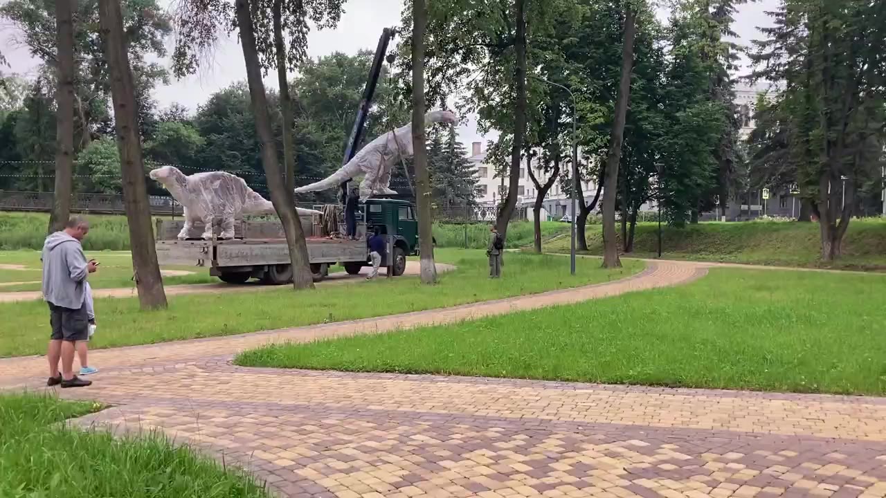 25 июля в Великие Луки приехала первая партия динозавров. 26 июля рабочие продолжают установку динозавров в парке культуры и отдыха.