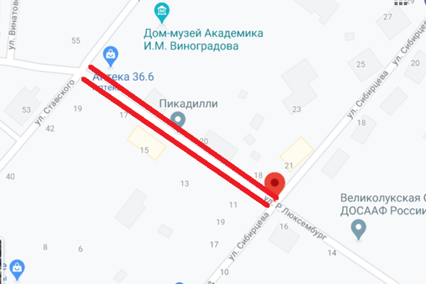 Администрация Великих Лук доводит до сведения автолюбителей, что с 8:00 28 июля до 20:00 29 июля движение транспортных средств на участке автомобильной дороги по улице Р. Люксембург (участок дороги между перекрестками ул. Р. Люксембург — ул. Ставского и ул. Р. Люксембург — ул. Сибирцева) будет временно прекращено.
