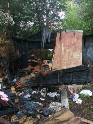 В результате пожара гараж 3х4 изнутри выгорел полностью, кровля уничтожена полностью. Причиной пожара явилось занесение постороннего источника огня по неосторожности. Погибших и пострадавших нет.