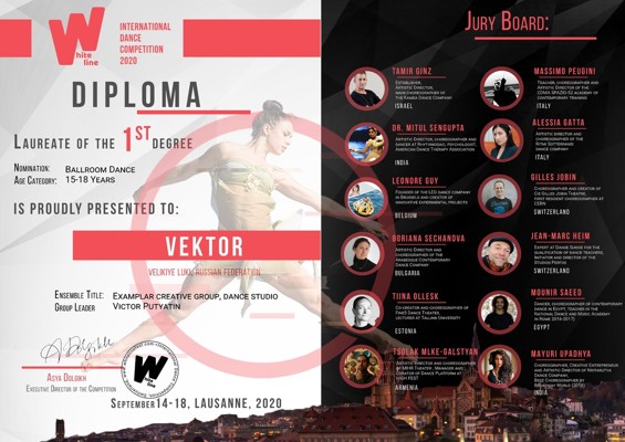 С 14 по 18 сентября в Лозанне (Швейцария) прошел международный онлайн-конкурс хореографического искусства «White line». В нем приняли участие коллектив танцевальной студии «Вектор» великолукского Дома культуры Ленинского комсомола.