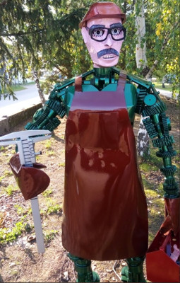 В Великих Луках появился необычная фигура мужчины-слесаря на улице Гоголя.