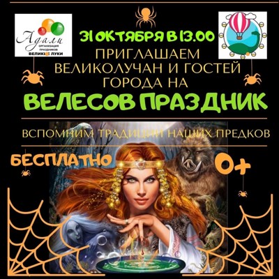 31 октября городской парк культуры и отдыха приглашает великолучан и гостей города на «Велесов праздник» (0+). Мероприятие начнется в 13:00.
