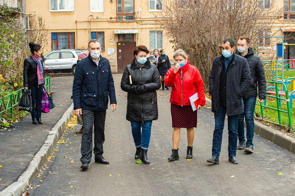 На приемке двора комиссия осмотрела качество уложенного асфальта, проверила бордюры на сколы и устойчивость. По словам сотрудников ЖКХ, нареканий по ремонту этого дворового пространства нет.
