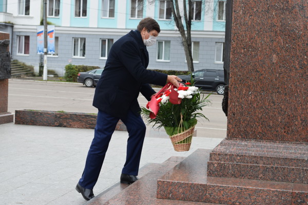Глава Великих Лук Николай Козловский возложил цветы к стеле «Город воинской славы»