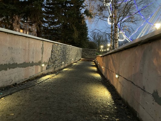 На официальной странице Вконтакте «Луки Парк» сообщили, что строители уже установили подсветку на пандусе.