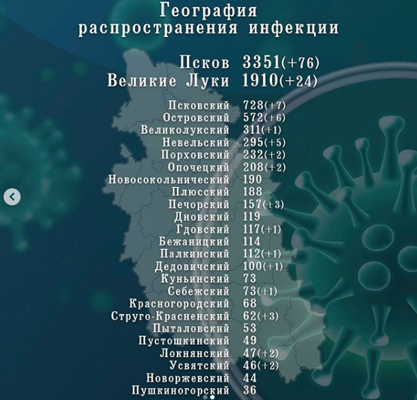 В Великих Луках за прошедшие сутки еще у 24 человек выявили коронавирус. Общее число заболевших за весь период в городе — 1910.