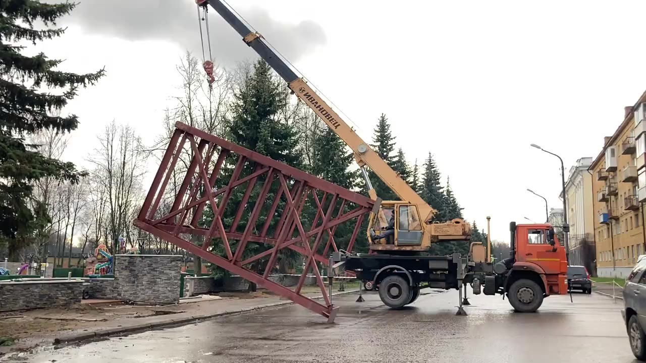 В парке культуры и отдыха идет монтаж входной арки