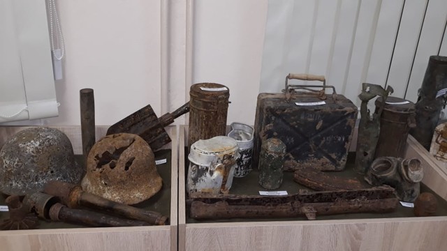 Члены отряда разместили на витринах предметы, найденные в поисковых экспедициях на местах боев. Наибольшее внимание уделено бытовым предметам солдат, обмундированию, снаряжению. Имеется и витрина с медицинскими принадлежностями оказания первой помощи.