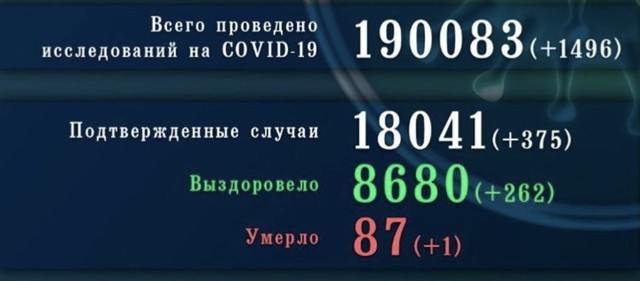 За прошедшие сутки в Псковской области коронавирус выявили еще у 375 человек. Общее число ковид-пациентов за все время пандемии достигло 18 041. Выздоровели за сутки 262 человека, за весь период — 8 680. Добавилась одна смерть, за весь период от коронавриуса умерло 87 человек.