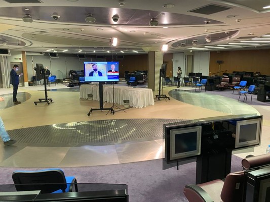 «На площадке все готово к ежегодной пресс-конференции. Псковская делегация уже прибыла на место. У каждого участника своё индивидуальное место с экраном. Журналисты рассажены с учетом социальной дистанции», — передает Ксения Фадеева.