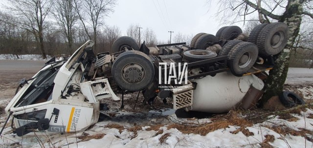 18 декабря на 297 километре трассы Шимск – Великие Луки в Великолукском районе перевернулся КамАЗ с бетоном, передает корреспондент газеты «Наш путь».