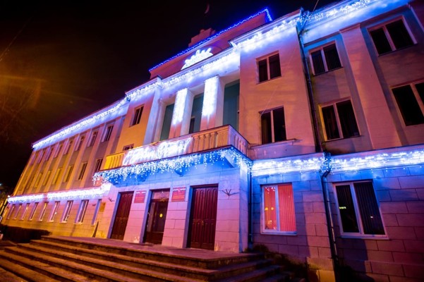 Традиционное новогоднее убранство появилось на главной городской площади. Гирляндами и световыми элементами украсили здание городской администрации, сцену.