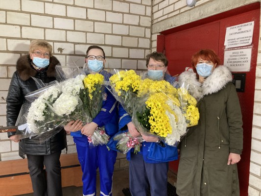 В Великих Луках единороссы подарили медикам скорой помощи цветы