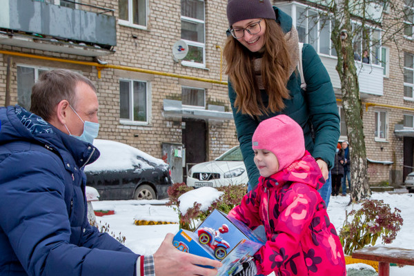 Александр Козловский поздравил Арину и ее маму Елену с наступающим Новым годом, пожелал здоровья и счастья. «Не болей, слушайся маму», – сказал он маленькой великолучанке и передал ей подарок.
