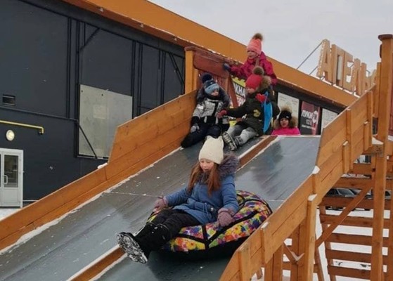 Возле ТЦ «Апельсин» работает бесплатная горка для катания на ватрушках