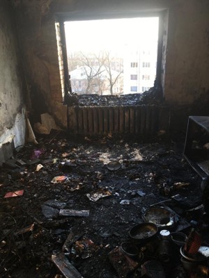 Фотографии с места пожара в квартире в Великих Луках