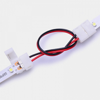 Одиночные клипсы служат для непосредственного соединения лент, а оснащенные проводами — для коммутации участков ЛЕД-ленты на расстоянии и сложных изгибов. Провод длиной 5–25 см соединяет группы контактов на двух клипсах.