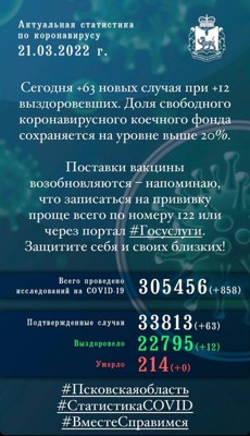 Стала известна статистика распространения коронавируса в Псковской области