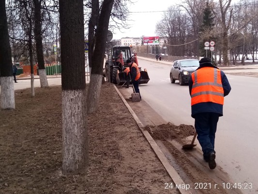 В Великих Луках коммунальщики убирают улицы от грязи