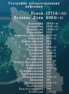 Михаил Ведерников в своем инстаграм опубликовал статистику по коронавирусу в Псковской области. За сутки в области зарегистрировано 70 случаев заражения Covid-19. В Великих Луках 5 человек подхватили заразу. 54 человека излечились.