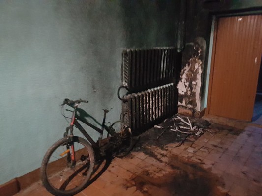 0На первом этаже общежития в коридоре сгорела коляска. Огнем повреждены коляска и велосипед «Стеллс». Закопчен коридор.
