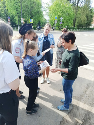 0Юные инспекторы движения вручали прохожим тематические листовки и проводили профилактические беседы.