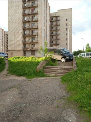 Фотофакт: в Великих Луках на Октябрьском проспекте водитель припарковал машину на ступеньках