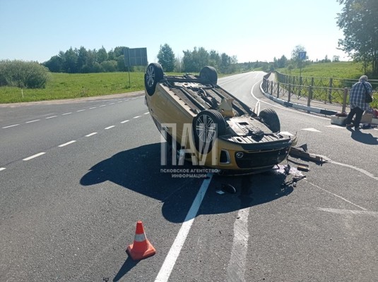 Москвичка опрокинула автомобиль в Великолукском районе