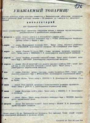 Госархив Псковской области опубликовал афишу из фонда Великолукского областного лекционного бюро