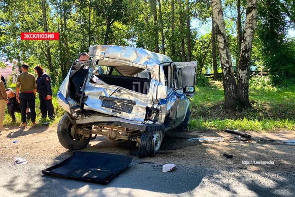 0 9 фотоПо предварительной информации, водитель полицейского автомобиля «Нива», совершая поворот налево, пропускал встречные транспортные средства. В этот момент водитель большегрузной машины совершил наезд сзади. «Нива» была отброшена на встречную полосу и столкнулась с автомобилем «Опель».