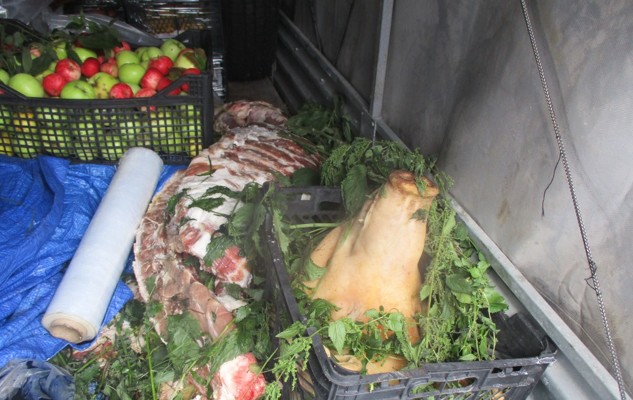 0В ходе проведения ветеринарного контроля государственным инспектором Управления было установлено, что продукция перемещалась без ветеринарных сопроводительных документов и маркировок (клейм), подтверждающих безопасность и происхождение. Также были выявлены нарушения ветеринарно-санитарных правил транспортировки — перевозка осуществлялась без холодильного оборудования, а температура в толще товара, требующего низкотемпературного контролируемого режима хранения, составила +19,8 °C.