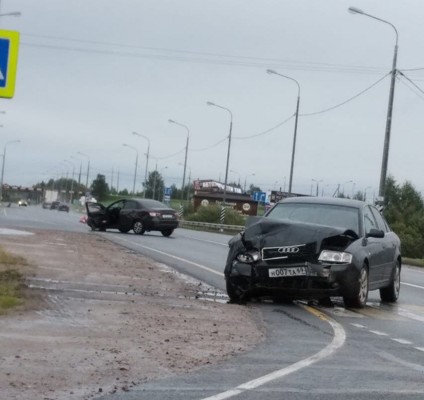 Фотофакт: На федеральной трассе в Великолукском районе столкнулись две легковушки