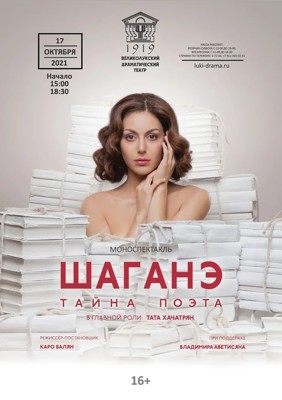 История Шаганэ, загадочной восточной красавицы, оставалась невидимой по сей день. В её судьбе накрепко сплетены события бурных 20-х годов, борьба за право быть собой, роковая встреча с великим русским поэтом. В ней само существование армянской женщины, наполненное надеждами на счастье и стремлением к свободе. Музыка, видеоряд, а также снег, который как настоящий засыпает сцену — все это добавит реалистичности происходящему и создаст невероятную атмосферу той несбывшейся любви.