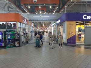 «Администрация ТЦ «Апельсин» в целях более безопасного посещения магазинов посетителями, несколько раз в день проводит обработку полов, дверных ручек, поручней эскалатора, детской площадки и всех контактных поверхностей мест общих пользований специальным дезинфицирующим вирулицидным средством. Все туалеты оснащены бесконтактными кранами, горячей водой, моющими дезинфицирующими средствами и сушилками для рук», — рассказал начальник АХО.