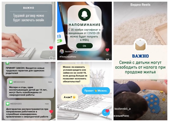 Кроме того, депутат загрузил в Reels ролики на следующие темы: сертификаты о вакцинации теперь можно будет получить в МФЦ, трудовой договор можно заключать онлайн, новые трудовые гарантии для одиноких родителей, возможность изменения условий кредита или займа из-за Covid-19.