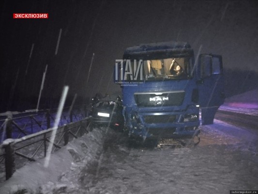 12 декабря в 22:00 на на 471 км дороги Москва — Балтия в Великолукском районе водитель автомобиля Форд «Фокус», 33-летняя жительница Пскова, двигаясь в сторону города Великие Луки выбрала небезопасный скоростной режим, не учла сложные погодные условия, не справилась с управлением, в результате чего выехала на встречную полосу, где столкнулась с фурой с