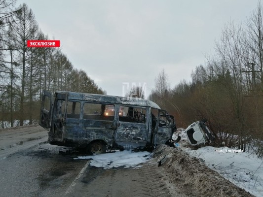 «Газель» сгорела в результате ДТП в Новосокольническом районе