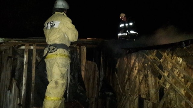 0В результате пожара уничтожено несколько сараев и строение бани. Причина возгорания устанавливается.