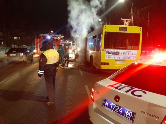В Псковской области загорелся автобус с пассажирами
