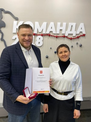 1Медаль и благодарность, подписанную Президентов Владимиров Путиным, руководителю клуба «Отечество Псковская область» Владимиру Владимирову вручила Наталья Плявинская, начальник Управления общественных проектов и молодежной политики Администрации Псковской области.