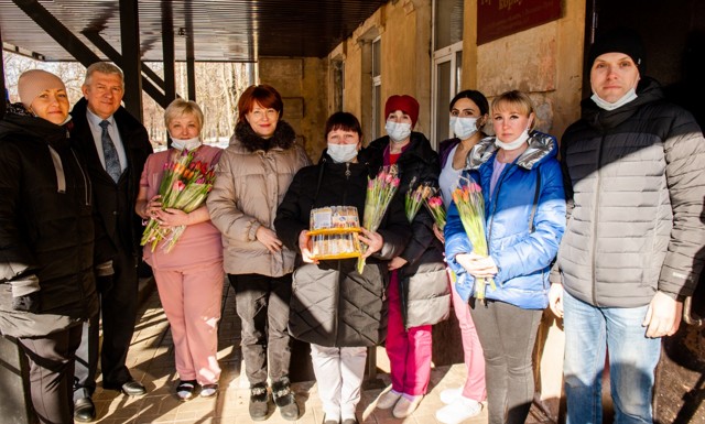 0 4 фотоВместе с букетами тюльпанов медики получили много добрых слов от исполняющего полномочия Главы города Сергея Гусева и заместителя Главы города Николая Андросовича.