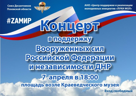 0Мероприятие пройдет 7 апреля в Великих Луках. Оно состоится на площади возле Краеведческого музея. Начало мероприятия в 18:00. В ходе проведения акции планируется выступление творческих коллективов Великих Лук с музыкальными и танцевальными композициями.