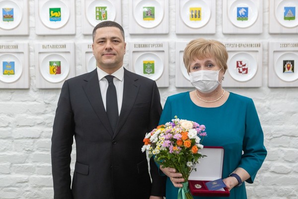 Михаил Ведерников также вручил нагрудные знаки к региональному почетному званию «Заслуженный работник культуры Псковской области». За вклад в сохранение и популяризацию русской культуры почетного звания удостоились директор Великолукской центральной городской библиотеки им. И. И. Семевского Галина Ковалева, начальник службы музейной экскурсионной и методической работы Пушкинского музея-заповедника Елена Михайлова, гендиректора Псковской областной универсальной научной библиотеки им. В. Я. Курбатова Вера Павлова, директор районного культурного центра Куньинского района Елена Харченко и первый замдиректора Псковского областного центра народного творчества Лидия Чечельницкая.