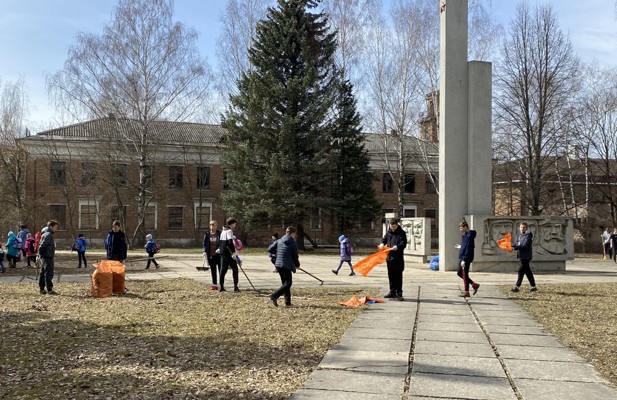 В субботнике приняли участие ребята из 7 «Б» и 8 «Б» классов. Некоторые из них уже не первый раз приводят в порядок территорию памятника.