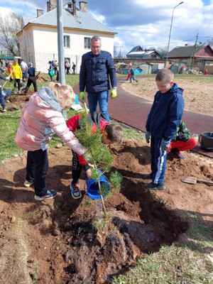 Возле школы №6 высадили кедры