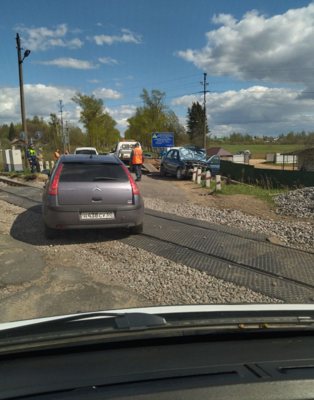 Фотофакт: В Великолукском районе на железнодорожном переезде водитель иномарки снёс столб