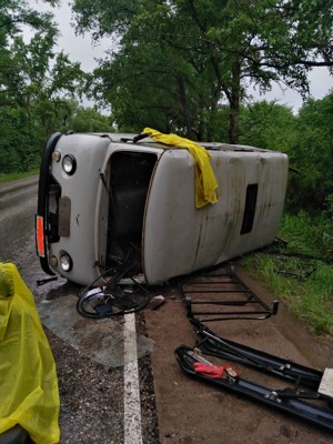 0 4 фотоПосле столкновения УАЗ опрокинулся на проезжей части, а Ford съехал в кювет.