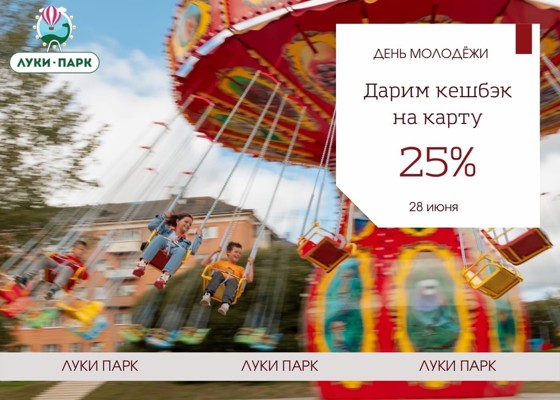 В честь Дня молодежи «Луки Парк» дарит кешбэк 25% на карту парка