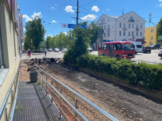 Фотофакт: В Великих Луках на проспекте Ленина начался ремонт тротуара